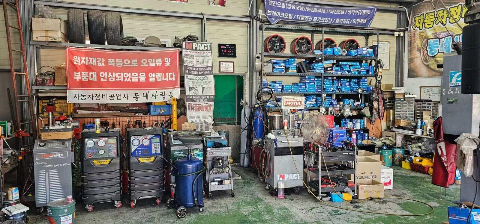 업체 소개 충남 아산시 음봉면에 위치한 공업사로서 판금,도장을 전문으로 하는업소입니다.회사물류업체의 주기적인 정비관리도 가능하며 엔진오일교환시 플러싱 및 합성유등을 저렴한 가격에 제공해드립니다. THE BEST MECHANICS 판금,도장 부분 전문업체 금호,한국,넥센타이어 전문 취급점 엔진오일교환시 플러싱 및 합성유 할인가제공 쿠팡등 물류회사 정기관리업소